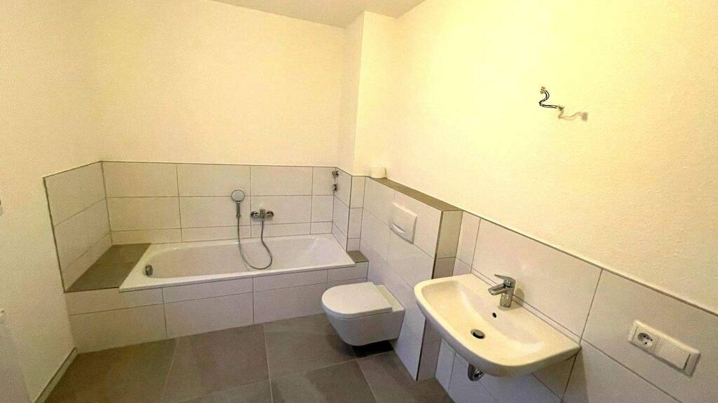Ihre neue Wohnung besteht aus zwei großzügigen Zimmern, ausgestattet mit hellem Vinylboden, einer Küche und einem neuen Tageslichtbadezimmer mit Dusche und Badewanne.
