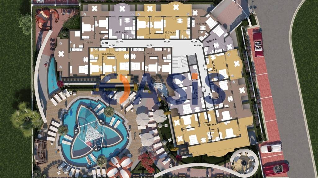 Das Gebiet ist mit hellen Farben in Form eines Flusses und eines Pools in einer ungewöhnlichen Form dekoriert. In der Nähe gibt es eine Parkfläche mit einer Gesamtfläche von 9 Hektar. Das gepflegte Gebiet, das an den Komplex grenzt, und die nahe Entfernung zum Meer schaffen ein einzigartiges Klima. Die hohe Bauqualität und das Niveau der Kontrolle gehören zu den Dingen, die Ihnen eine komfortable Unterkunft bieten, und ein Team von Wartungs- und Wartungstechnikern kümmert sich das ganze Jahr über um die Annehmlichkeiten aller Eigentümer. Für die Bequemlichkeit der alle Besitzer der Club wirkt ein System, das beinhaltet die Nutzung von: mehreren externen Pools für Erwachsene und Kinder, Innenpool, Außenpool mit Stoßwelle, SPA-Zentren, indoor-Jacuzzi, Sauna, Dampfbad, salzkammer, ein Eis-Bad, Lauben zum entspannen, einen japanischen Garten, Piratenschiff, Tischtennis, Spielplätzen, Sitzgelegenheiten auf dem Dach einige komplexe etc.