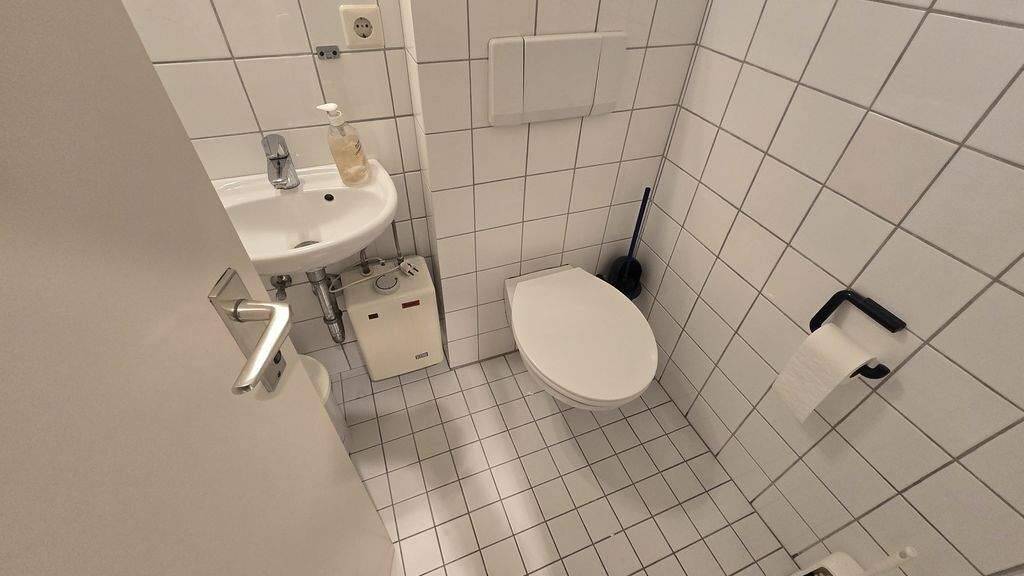 Die Einheit verfügt zudem über eine Küche mit einer praktischen Küchenzeile sowie zwei separate Toiletten. Die durchdachte Raumaufteilung und die gute Lage machen diese Fläche ideal für Bürotätigkeiten oder Praxen.