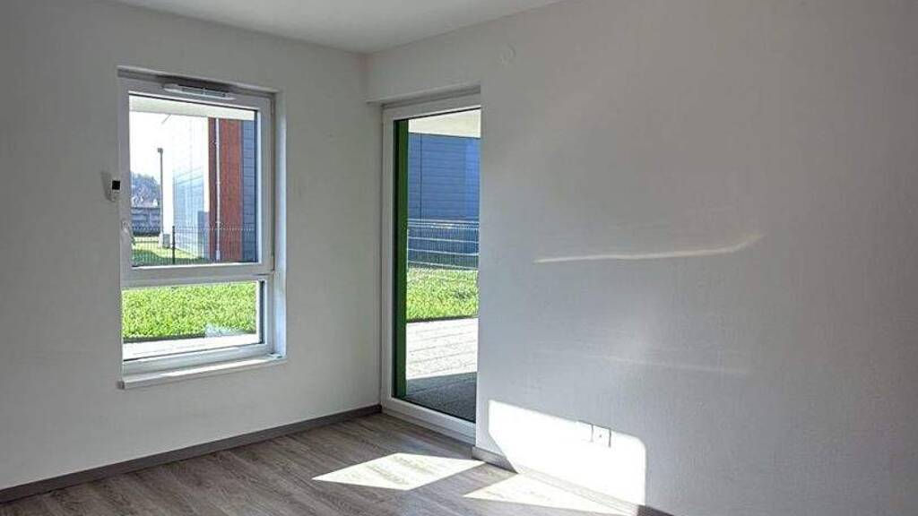 Einem hellen Wohnzimmer mit Zugang zu einer 21 m² großen Terrasse und einem privaten Garten von 59 m², ideal um schöne Tage im Freien zu genießen.