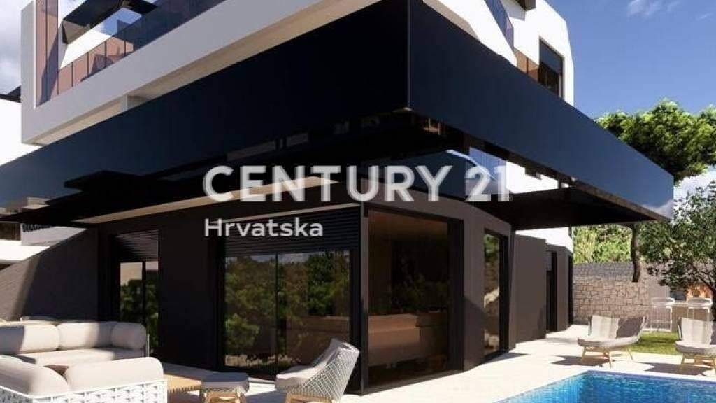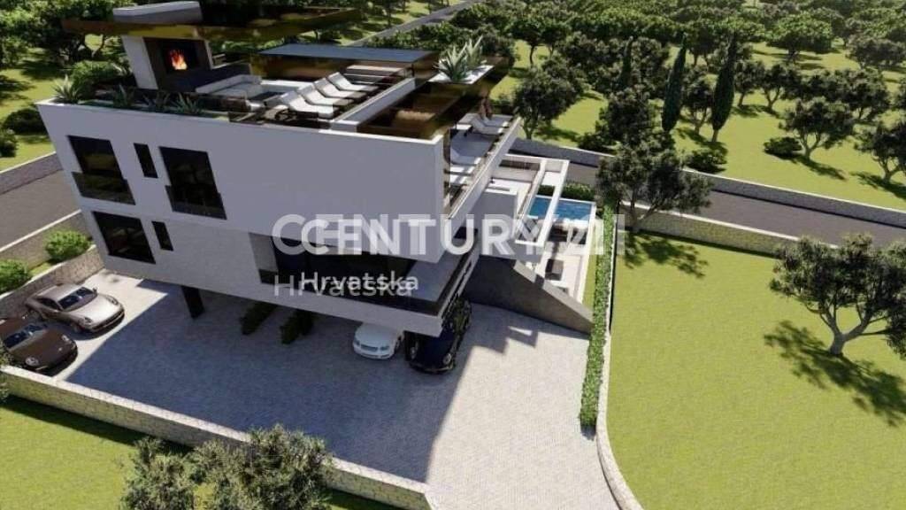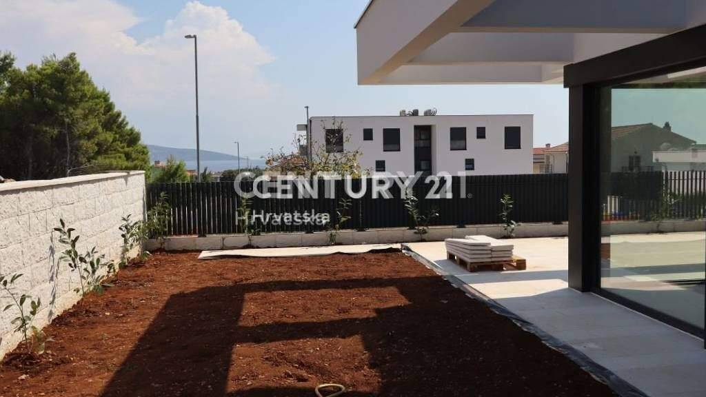 Stan se prostire u prizemlju i suterenu zgrade. Prizemlje se sastoji od velikog open space dnevnog boravka s kuhinjom i blagavaonom, te 3 spavace sobe i 2 kupaone. Iz boravka se izlazi na prostranu terasu i dvoriste, koje u obliku slova L opasuje stan s dvije strane te gleda prema moru. U dvoristu je bazen koji pripada samo ovom stanu, te obilje zelenila i prostora za boravak vani. U suterenskoj razini ispod prizemlja se nalazi velika konoba povrsine 69 m2, koja ima i svoju zasebnu kupaonicu s wc-om. Ovakav stan na ovoj prestiznoj lokaciji predstavlja rijetkost na trzistu.