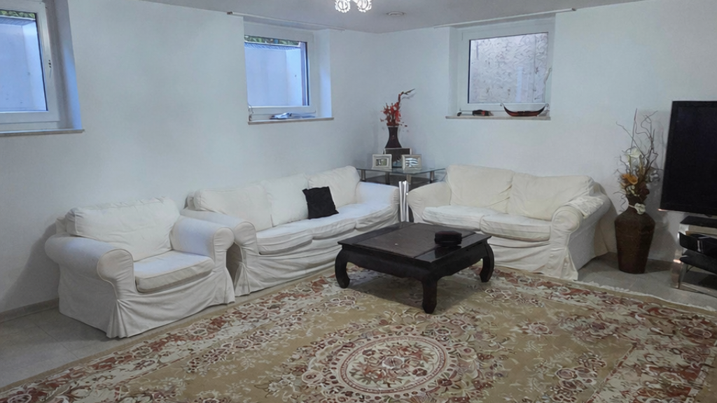 Auf ca. 150 m² Wohnfläche verteilt sich ein durchdachtes Wohnkonzept über zwei Etagen, das sowohl Komfort als auch Funktionalität bietet. Ergänzt wird das Raumangebot durch einen vollständig ausgebauten Keller mit weiteren 75 m² Nutzfläche, der als zusätzlicher Wohnbereich genutzt werden kann.