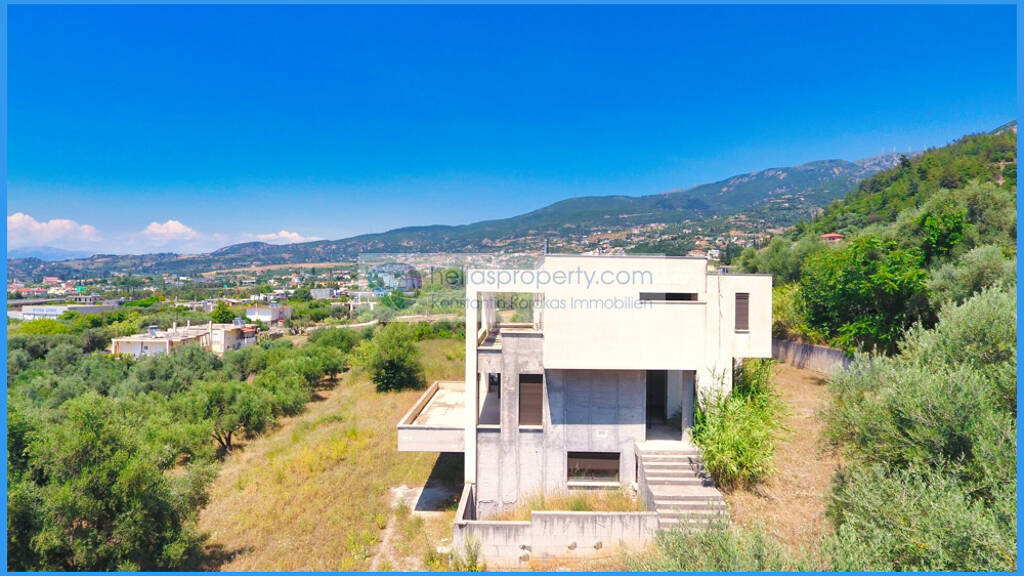 Eine einzigartiges Haus in einer der begehrtesten Lagen von Patras, in Petroto, ganz in der Nähe des historischen Anwesens von Achaia Clauss. Hier trifft Natur auf moderne Architektur auf einem privaten Grundstück von 2 Hektar voller Olivenbäume und freiem Blick auf den Golf von Patras.
