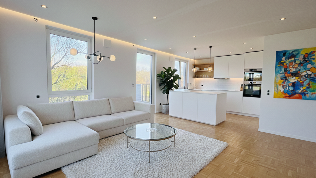 Hier wohnen Sie auf höchstem Niveau: - Großzügiger Wohnbereich mit lichtdurchfluteten Räumen - Hochwertige Küche mit modernsten Elektrogeräten - Zwei stilvolle Schlafzimmer - Zwei elegante Bäder, eines davon en suite - Praktisches Gäste-WC