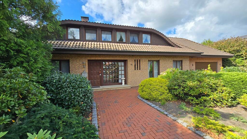 Ab sofort sucht diese besondere Immobilie in Ochtrup einen neuen Eigentümer. Inmitten von Ochtrup auf einem repräsentativen Grundstück mit einer Größe von mehr als 1.200 m² befindet sich dieses geschmackvolle Einfamilienhaus aus dem Jahr 1983. Schon beim ersten Anblick des Hauses fallen der schön angelegte Vorgarten mit ansprechenden Grünflächen und Steinakzenten auf. Beim Betreten des Eingangsbereiches stechen direkt die verwendeten hochwertigen Baumaterialien wie der Natursteinboden und die Echtholztreppe hervor.