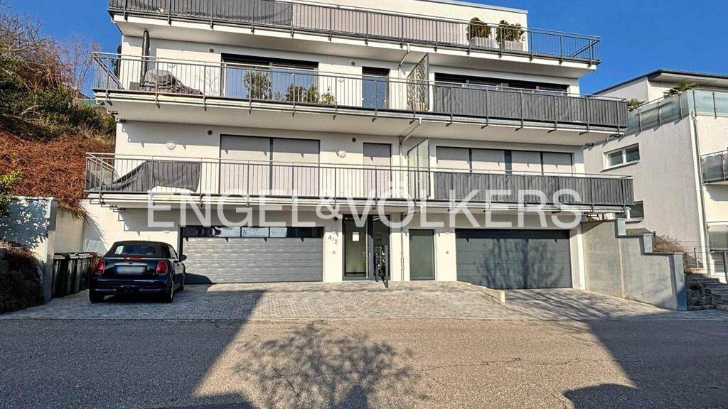 In bester Wohnlage von Wiesloch befindet sich diese Wohnung im Dachgeschoss eines 2017 entstandenen Mehrfamilienhauses. Fußläufig kann man alle wesentlichen Einrichtungen, wie das Schulzentrum, die Fußgängerzone sowie Einkaufsmöglichkeiten und Sportanlagen von Wiesloch erreichen. Das Haus ist mit einer Tiefgarage und zusätzlichen Parkplätzen vor dem Haus sowie einem Keller und Aufzug ausgestattet. Die hier angebotene Wohnung im Dachgeschoss bietet einen traumhaften Blick über die Stadt. Das großzügige Wohn-Esszimmer mit offener Küche ermöglicht den Zugang zur sonnigen Dachterrasse mit Süd-/Westausrichtung, die sich über die komplette Südseite und einen Teil der Ostseite zieht. Insgesamt drei Schlafzimmer, davon das Hauptschlafzimmer mit eigenem Badezimmer inklusive Badewanne und Dusche sowie ein weiteres Tageslicht-Duschbad mit genügend Platz und Anschlüssen für Waschmaschine und Trockner und ein praktischer Abstellraum komplettieren die Räumlichkeiten. Die vorhandene hochwertige und moderne Einbauküche gehört ebenfalls zur Wohnung. Beheizt wird das Objekt mit einer effizienten Gasheizung und einer umweltschonenden Luftwärmepumpe. Die Beheizung der Wohnungen wird mittels Fußbodenheizung umgesetzt. Eine dezentrale Lüftungsanlage mit Wärmerückgewinnung sorgt für die kontrollierte Zufuhr von Frischluft. Die Konstruktion des Gebäudes ist massiv mit Stahlbeton und Kalksandsteinen erbaut. Gedämmt ist das Gebäude mit einem 18 cm starken Vollwärmeschutz, dies dient auch dem sommerlichen Wärmeschutz. Für die heißen Tage im Jahr ist zusätzlich eine Klimaanlage in Wohn-Esszimmer vorhanden. Die verschiedenen technischen Vorrichtungen sorgen für ein effizientes KfW-70 Haus (ENEV-2016). Des Weiteren sorgen elektrische Rollläden, bodenebene Duschen mit Glas-Duschabtrennungen und Vollholzböden für einen hohen Wohnkomfort. Abgerundet wird das Angebot durch eine Garage sowie einen davorliegenden Stellplatz. Diese werden für insgesamt EUR 20.000,- extra berechnet.