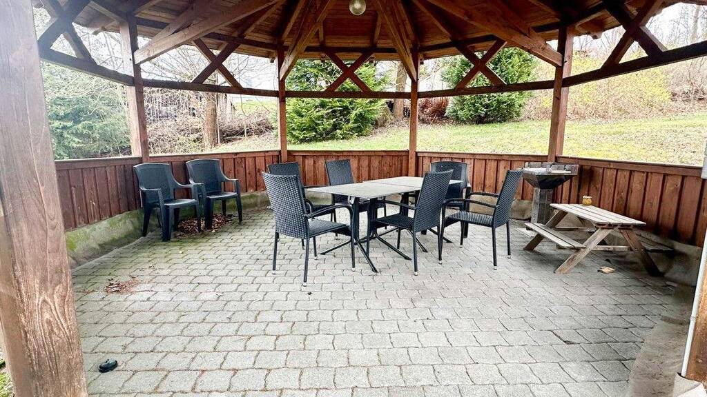 -großer Gartenbereich mit Pavillion für die Bewohner des Hauses zur Gemeinschaftsnutzung