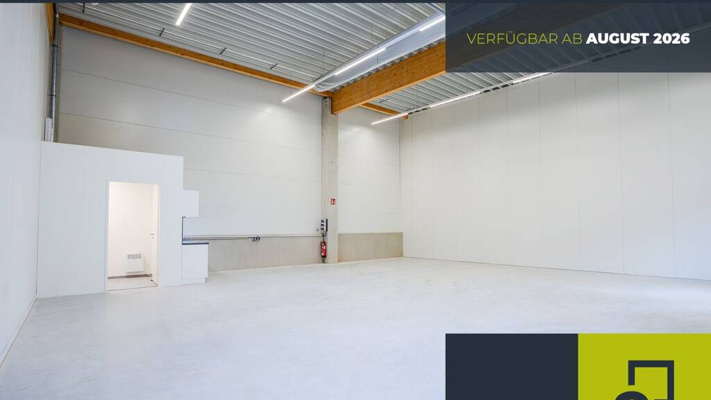 . Hallenfläche ca. 135 m² . Boden: Hartstoffestrich, Gabelstapler geeignet; PVC im Büro . Bodentraglast Hallensohle 3.500 kg/m² . Ebenerdiges Sektionaltor, elektrisch 3,0 x 3,75 m . Außentür: Kunststofftür . Fenster: Kunststofffenster mit Isolierverglasung. Innenliegender Sonnenschutz . Teeküche (inkl. Kühlschrank) . WC-Kern . Luft-Luft-Wärmepumpe (Heizen + Kühlen) . Büro (Cat 7-Verkabelung) . Elektro-Ausstattung: 1x CEE 16A, 4x Schuko-Steckdose 16 A (2x im vorderen, 2x im hinteren Hallenbereich, 2x Schuko-Steckdose in der Mezzaninefläche) . Innen-Beleuchtung: Frei strahlende LED-Leuchten, 300 Lux mit Bewegungssensoren . Außen-Beleuchtung: LED-Außenleuchten über Hallentür und an der Fassade . Ein Stellplatz . Digitalisierungspaket (u.a. digitale Schließung, eigenes WLAN je Mieteinheit)