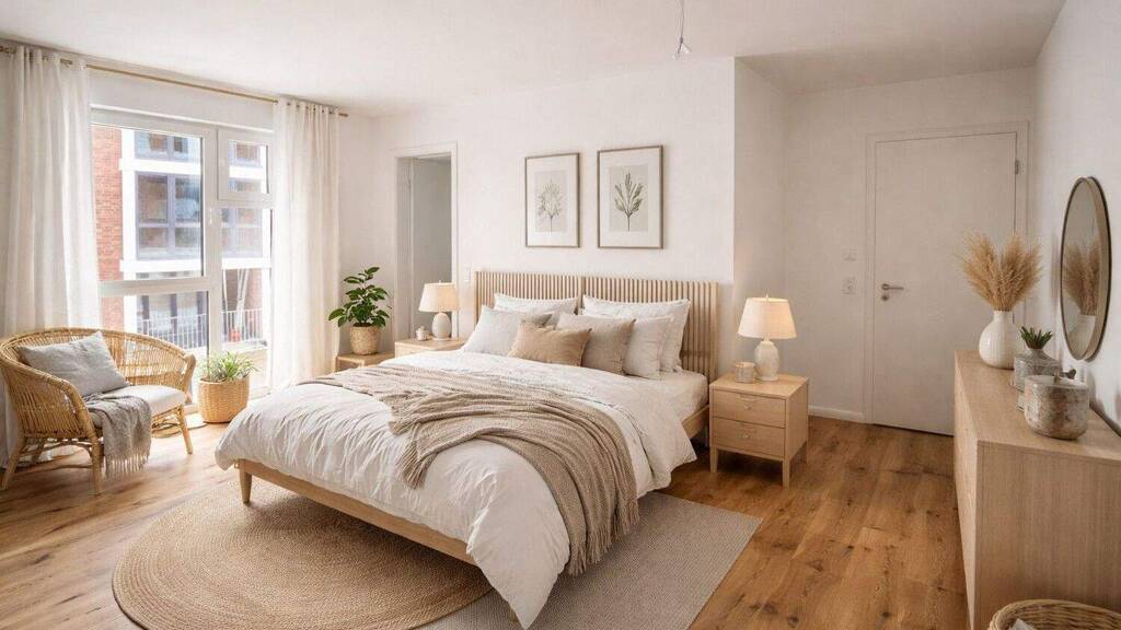 Eichenparkett in den Wohn- und Schlafbereichen schafft ein edles und zugleich natürliches Ambiente, während moderne Fliesen in den Bädern und Küchen gestalterische Akzente setzen.
