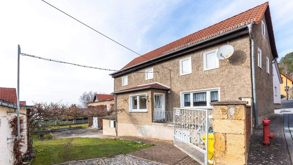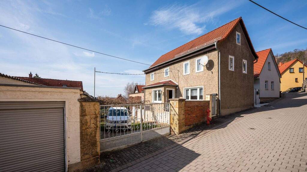 This property in Jena-Ziegenhain is a small farmhouse with outbuildings, a workshop, a small garage, and a barn located in the rear part of the plot.