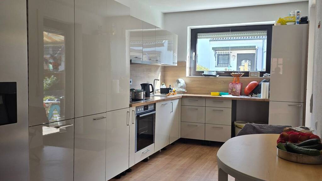 -5 gut geschnittene Zimmer -Zwei Balkone -Zwei Badezimmer (eins mit Badewanne, eins mit Dusche im Dachgeschoss) -Gäste-WC im Erdgeschoss -Aktuell laufende Badsanierung (teilweise noch ohne Bildmaterial) -Moderne Bodenbeläge: Fliesen und Laminat -Bereits modernisierte Bereiche im Haus -Küche vorhanden (wird jedoch nicht mit verkauft) -Voll unterkellert mit viel Stauraum und Nutzungsmöglichkeiten Raumaufteilung: Im Erdgeschoss befinden sich das helle Wohnzimmer, die Küche sowie ein Gäste-WC. Im Obergeschoss stehen Ihnen drei Zimmer sowie ein Badezimmer mit Badewanne zur Verfügung (aktuell in Modernisierung). Das Dachgeschoss bietet ein großes Schlafzimmer sowie ein separates Duschbad, ideal als privater Elternbereich oder für ältere Kinder. Der Vollkeller rundet das Raumangebot sinnvoll ab.