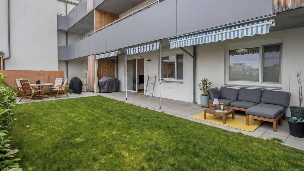 Der großzügige Garten (ca. 54 m²) samt ca. 23 m² großer Terrasse bietet eine ruhige, private Wohlfühloase mit viel Raum für Entspannung. Darüber hinaus ist der Wohnung ein Stellplatz zugehörig. Die monatlichen Betriebskosten belaufen sich auf etwa 260 €.