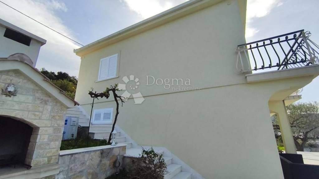 Wir bieten ein Haus zur Miete an, das aus drei Schlafzimmern, einer geräumigen Küche mit Essbereich und Wohnzimmer, zwei Badezimmern und einer großen Terrasse mit atemberaubendem Blick besteht. Jedes Zimmer im Haus ist mit einer eigenen Klimaanlage und Fußbodenheizung ausgestattet, was einen komfortablen Aufenthalt das ganze Jahr über ermöglicht. Der hintere Teil des Gartens umfasst einen Schotterparkplatz mit ausreichend Platz für mindestens vier Fahrzeuge, während sich auf der Vorderseite ein neuer Überlaufpool befindet. Neben dem Pool gibt es einen Kamin mit einem überdachten Bereich, der sich ideal für Veranstaltungen eignet, und in diesem Bereich befindet sich auch eine kleine Toilette. Auf den Fotos können Sie die charmante Umgebung sehen, die dieses Haus umgibt. Obwohl es in einer ruhigen Umgebung liegt, ist das Haus nur 600 Meter vom Meer entfernt, und alle notwendigen Annehmlichkeiten, einschließlich des Zentrums von Marina, sind nur wenige Minuten mit dem Auto entfernt. Dieses Haus stellt eine ideale Gelegenheit für ein ruhiges Familienleben oder als Investition in den Tourismus dar.