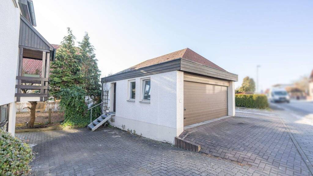 Das Haus befindet sich auf einem ca. 500 Quadratmeter großem Grundstück ist vollunterkellert und bietet zudem eine Doppelgarage sowie eine Terrasse im hinteren Bereich. Im Keller findet sich neben mehreren Lagerräumen auch eine kleine Werkstatt.