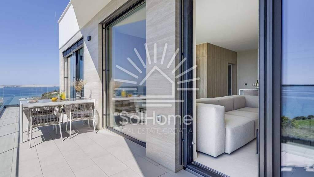 Vorteile des Apartments: - Offener Meerblick und bezaubernde Sonnenuntergänge dank der südwestlichen Ausrichtung - Große Glasflächen mit einer Höhe von 2,6 m für maximale Helligkeit und Panoramablick - Fußbodenheizung im gesamten Apartment für angenehme Wärme - Klimatisierung in jedem Raum - für Kühlung und Heizung - Hochwertige Ausstattung: - Fenster und Türen mit Dreifachverglasung - 20 cm Fassadenisolierung für optimale Energieeffizienz - Begehbare Duschkabinen - Großformatige Fliesen von höchster Qualität - Sicherheit: Videoüberwachung des Gebäudes und Türsprechsystem mit Kamera - Voll möbliert - einziehen und genießen