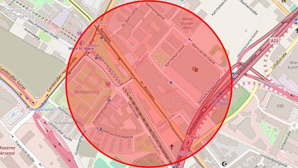 Die Landstraßer Hauptstraße ist nur 650 Meter entfernt, die Simmeringer Hauptstraße 6 Gehminuten, die Auffahrt auf die A23/Süd- Osttangente erreichen Sie in 7 Fahrminuten. In der Umgebung gibt es Veranstaltungsorte wie die Marx-Halle und das Globe.