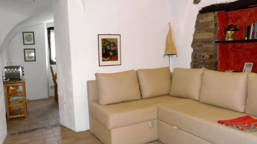 Die charmante Wohnung liegt in sonniger Lage am unteren Dorfrand von Apricale. Sie ist von den Parkplätzen aus bequem und in wenigen Schritten erreichbar. Die Infrastruktur des mittelalterlichen Ortes ist intakt; es gibt zwei Lebensmittelgeschäfte, eine Apotheke, Bars und mehrere gute Restaurants, in denen man die hervorragende ligurische Küche verköstigen kann. Apricale liegt ca. 20 Autominuten vom Meer entfernt, die Côte d’Azur und der Flughafen Nizza sind in einer Stunde zu erreichen. Die Wohnung liegt im Erdgeschoss eines der typischen Natursteinhäuser im historischen Zentrum. Sie hat auf einer Ebene rund 36 qm Wohn-/Nutzfläche. Es empfängt ein kleiner Eingangsbereich, der in das Wohnzimmer führt. Hier sorgen das Sichtmauerwerk und die Gewölbedecke für besonders romantisches Flair, praktische Einbauschränke bieten ausreichend Stauraum. Vom Wohnzimmer besteht Zugang in das komfortable Bad sowie in die Wohnküche, die äußerst praktisch und funktional eingerichtet ist. Das Schlafzimmer mit kleinem Arbeitsplatz schließt sich an. Von der Wohnung hat man einen schönen Blick auf das Tal und die umliegenden Hügel, leider gibt es keine Außensitzmöglichkeit. Die Wohnung wurde 2003 komplett restauriert und ist in sehr gutem Zustand. Geheizt wird über Elektroradiatoren; der Gasanschluss liegt in der Gasse und kann nachgerüstet werden. Die Wohnung kann mit Inventar übernommen werden.