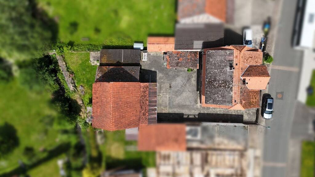 Das Ensemble umfasst neben dem Wohnhaus eine große Scheune, einen idyllischen Garten mit einem Bachlauf direkt am Grundstück sowie einen gemütlichen Innenhof. Das Gebäude ist vollunterkellert und verfügt zusätzlich über einen praktischen Holzschuppen.