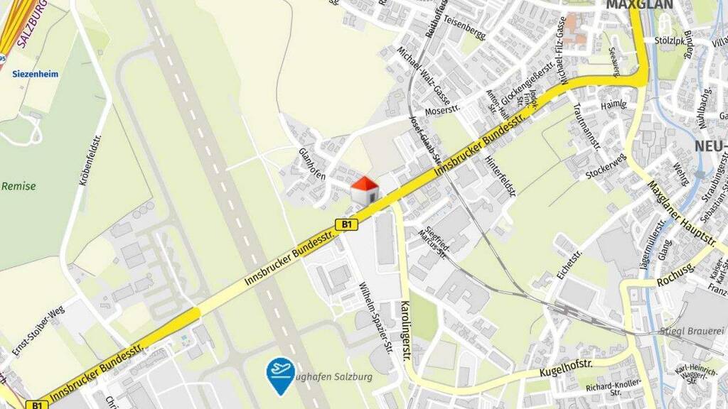 An der Achse zum Flughafen, Airport-Center und Autobahnknoten Salzburg-West gelegen, ist eine perfekte Verkehrsanbindung gegeben. Die Fahrzeit ins Stadtzentrum und die Altstadt beträgt meist weniger als 10 Minuten.