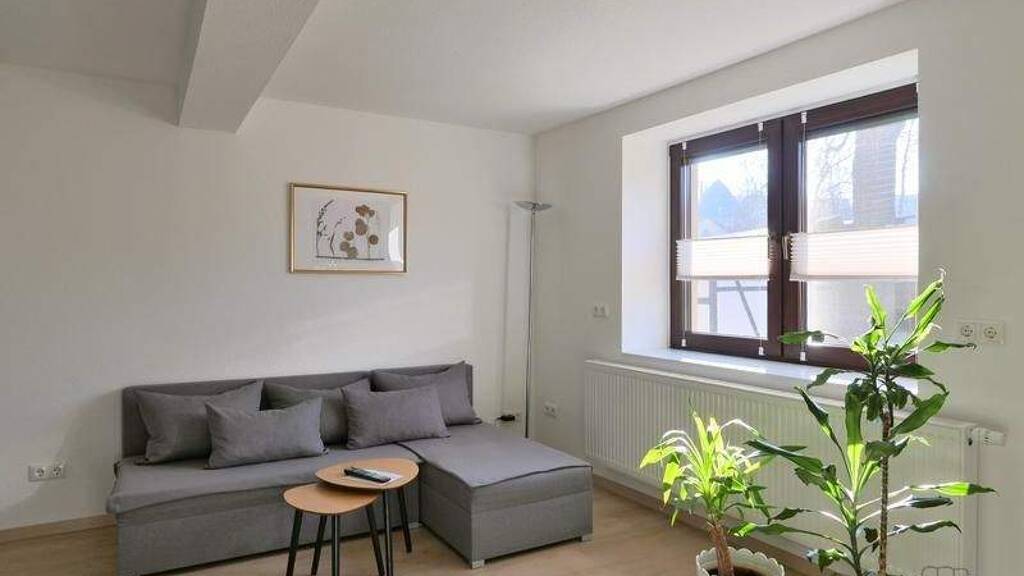 ### Please note the availability date! Bitte das Verfügbarkeitsdatum beachten! ### neu ausgabaute und neu möblierte Wohnung in Alkersleben bei Arnstadt; separater Hauseingang mit eigenem Grundstücksanteil (kein Foto); WLAN inklusive; großes Wohnzimmer mit Eckkcouch, Esstisch, Sideboard und TV; Schlafzimmer mit Doppelbett und Kleiderstange; moderne EBK im Küchenbereich; Bad mit Dusche, WC und Waschmaschine; Wohnungsflur mit Garderobe; Abstellkammer (kein Foto); große überdachte Terrasse mit Esstisch; Pauschalmiete 1.000,00 Euro; Vermietung an max. 2 Personen; Kaution 1.200,00 Euro; Endreinigung Mietersache; Mindestmietdauer 3 Monate; Pflichtangaben zum Energieausweis: Energieausweis gültig bis: 01.12.2032; Baujahr Gebäude: 1908; Energieausweis: nach Bedarf; Energieverbrauch: 137.5 kWh/(m²a); Energieeffizienzklasse: E; Primärer Energieträger: Oel