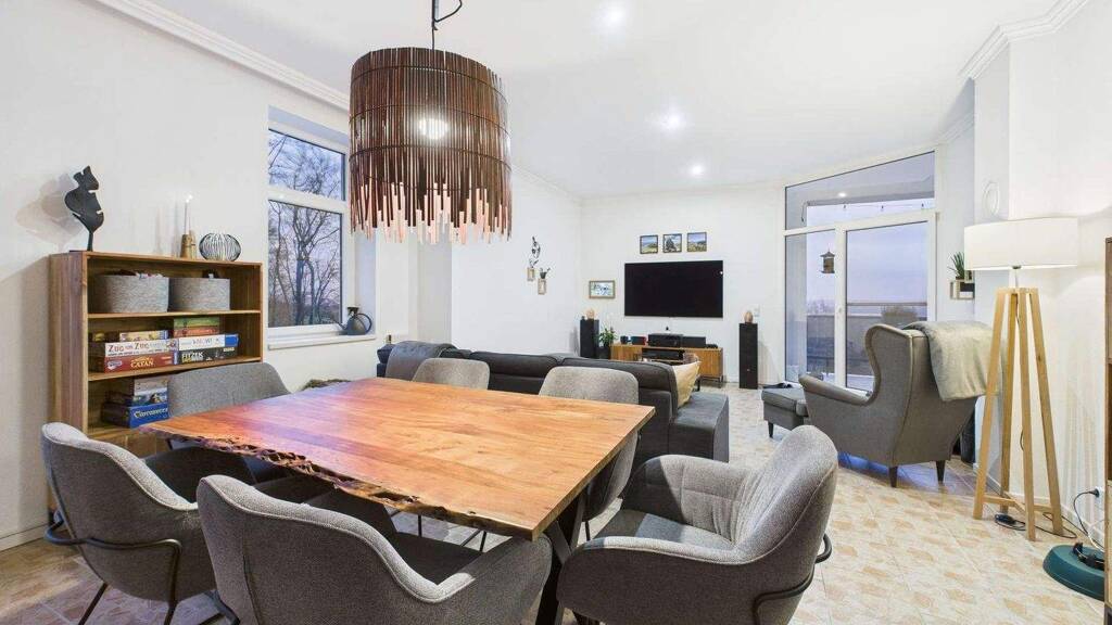 Entdecken Sie eine außergewöhnlich schön modernisierte Etagenwohnung, die mit ihrer stilvollen Ausstattung und durchdachten Raumaufteilung sofort begeistert. Auf großzügigen 140 m² Wohnfläche erstrecken sich vier einladende Zimmer, darunter zwei helle Schlafzimmer sowie ein flexibel nutzbares Büro- oder Gästezimmer. Ein modernes Bad sowie ein separates Gäste-WC ergänzen den hohen Wohnkomfort. Die Wohnung liegt im 1. Obergeschoss eines gepflegten Gebäudes und wurde zuletzt 2023 umfassend modernisiert. Trotz der Lage im Obergeschoss haben wir keine Schrägen und eine Deckenhöhe von über 2,80 m, was ein wunderbares Wohngefühl verleiht.