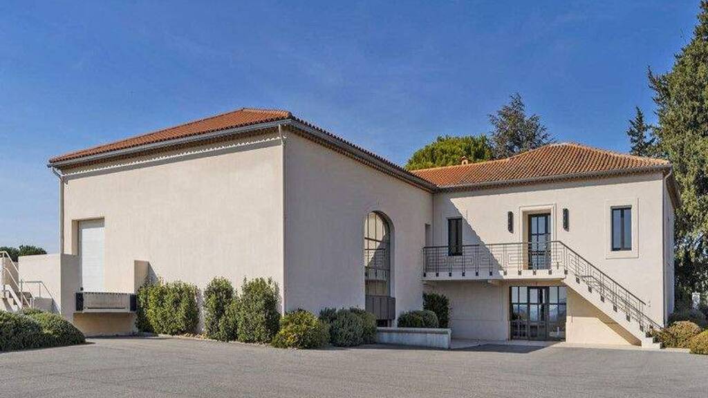 The land on which these buildings are located is completely fenced with the presence of a large metal gate giving access to the main road, at the entrance to the village of Chateauneuf du Pape, towards Avignon.