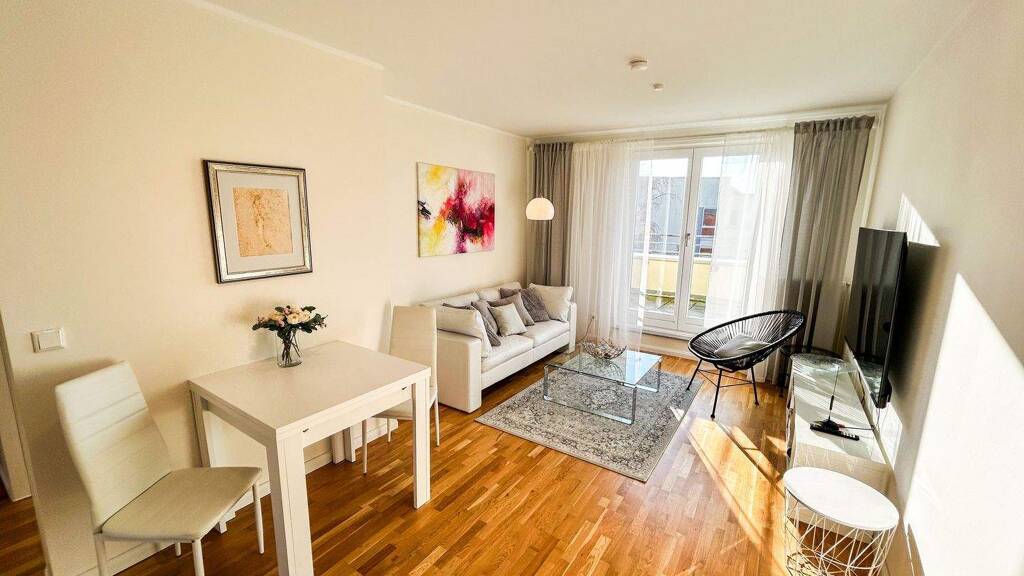 Es erwartet Sie ein Zuhause, welches in jeder Hinsicht beeindruckt: hochwertig, stilvoll möbliert und mit einem Auge fürs Detail eingerichtet. Diese exklusive 2-Zimmer-Wohnung erstreckt sich über 56,43 m² und bietet eine gelungene Kombination aus modernem Komfort und zeitloser Eleganz. Der offene Grundriss sorgt für ein großzügiges Wohngefühl, während die Ausstattung keine Wünsche offenlässt.