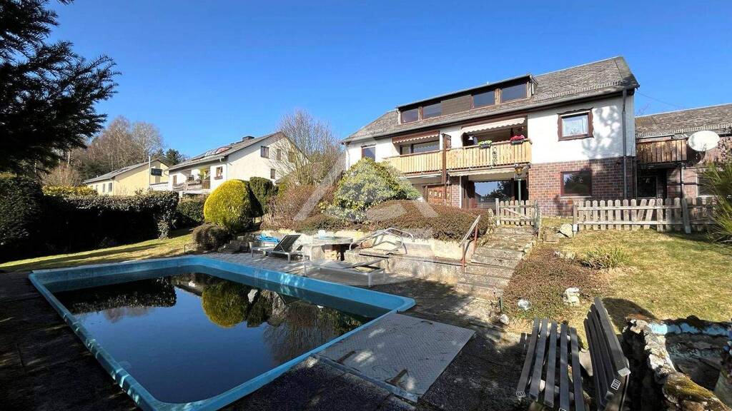 Besonders hervorzuheben ist der großzügige Außenbereich. Das Doppelhaus verfügt über einen großen Garten mit viel Gestaltungspotenzial. Ein vorhandener Pool bietet zusätzlichen Freizeitwert, dieser ist im Moment jedoch außer Betrieb. Die freie Aussicht sowie die ruhige und familiäre Lage am Ortsrand unterstreichen die hohe Wohnqualität dieses Angebots.