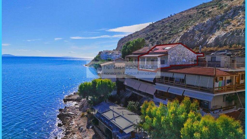 Eine zweistöckige Maisonette-Wohnung mit 95 m² steht in Kiveri zum Verkauf. Sie befindet sich in hervorragender Lage, nur wenige Schritte vom Meer entfernt und bietet einen unverbauten Panoramablick auf das Meer und Nafplio.