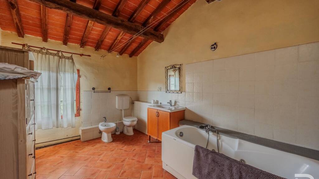 Inmitten eines großzügigen 6 Hektar großen Grundstücks, das stolze 80 Olivenbäume beherbergt, erhebt sich das rustikale Haus, das den ganz speziellen toskanischen Flair eines alten bäuerlichen Rusticos versprüht. Bereits beim Betreten der Immobilie spürt man die jahrhundertelange Geschichte, die in den original erhaltenen Materialien aus dem 15. Jahrhundert noch heute zum Ausdruck kommt, denn bei den Modernisierungsarbeiten, wurde größter Wert darauf gelegt, den ursprünglichen Charakter des Hauses zu bewahren. Besonderes Augenmerk wurde auch auf die Sanierung des Daches gelegt, das nun nicht nur historischen Charme, sondern auch modernste Wärmeisolierung bietet. Doch nicht nur das Haus selbst, sondern auch die Lage ist hervorragend: es ist nur 40 Minuten von der weltberühmten Kulturhauptstadt Florenz und gleichzeitig nur 40 Minuten vom Meer entfernt. Ebenso ist der bäuerliche Rustico bereits ans öffentliche Wassernetz angeschlossen, was einen hohen Komfort gewährleistet. Mit seiner charakteristischen Mischung aus geschichtsträchtigem Ambiente und modernem Lebensstandard bietet das Haus ein ausgezeichnetes Preis-Leistungsverhältnis und eignet sich perfekt zur Zimmervermietung - eine ideale Gelegenheit, das toskanische Landleben mit seinen kulinarischen und kulturellen Highlights Gästen aus aller Welt näher zu bringen.