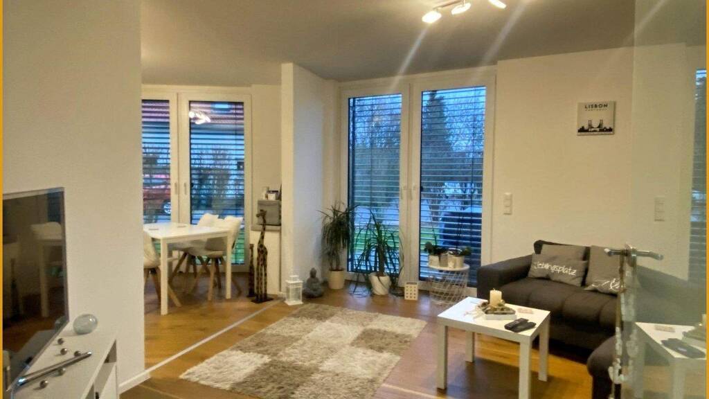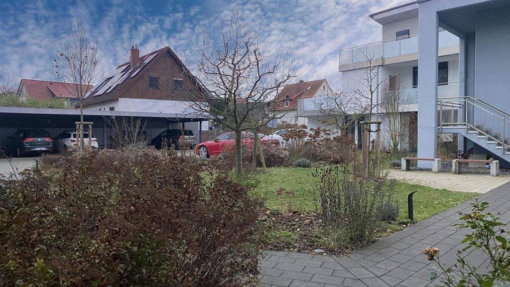 Vom Wohnzimmer wie auch von der Küche betritt man den eigenen pflegeleichten Garten. Zur Wohnung gehört selbstverständlich noch ein Stellplatz.