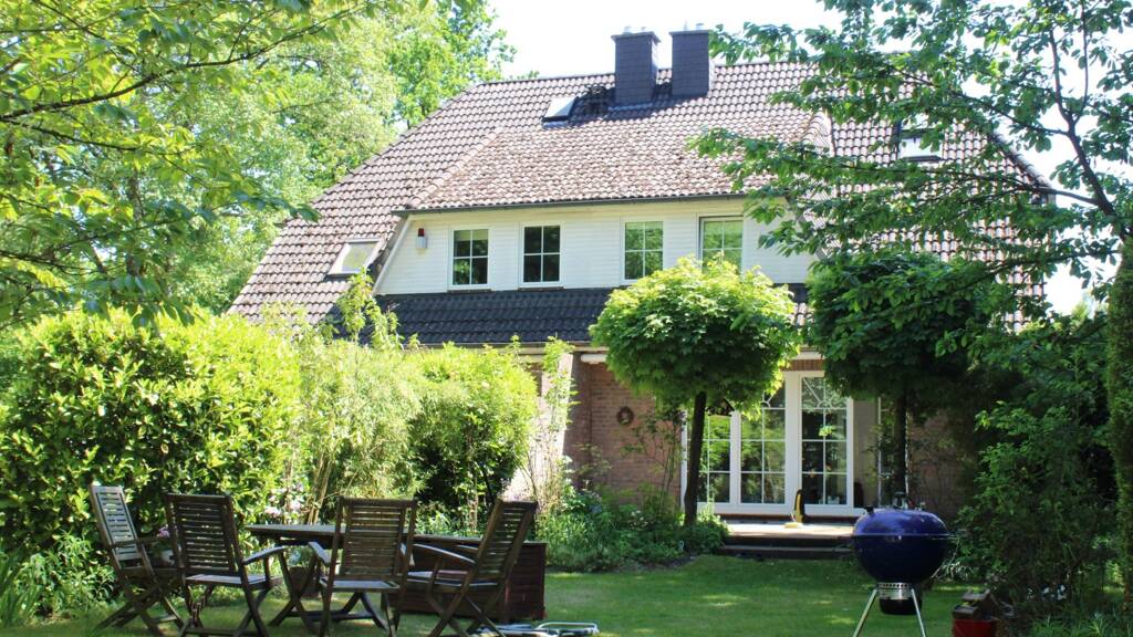 Auf einem wunderschönen Grundstück mit ca. 3.200 m² sind 1995 zwei Doppelhäuser mit Krüppelwalmdach und rötlichen Verblendstein errichtet worden. Die Architektur dieser Häuser mit den großen Gauben und den Sprossenfenstern ist zeitlos und elegant.