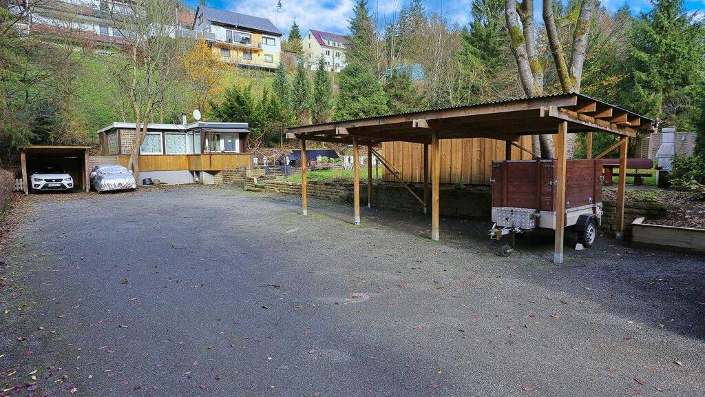 Die große Hofeinfahrt und die Carports bieten ausreichend Platz für Ihre Fahrzeuge und sorgen dafür, dass Ihr Auto sicher untergebracht ist.