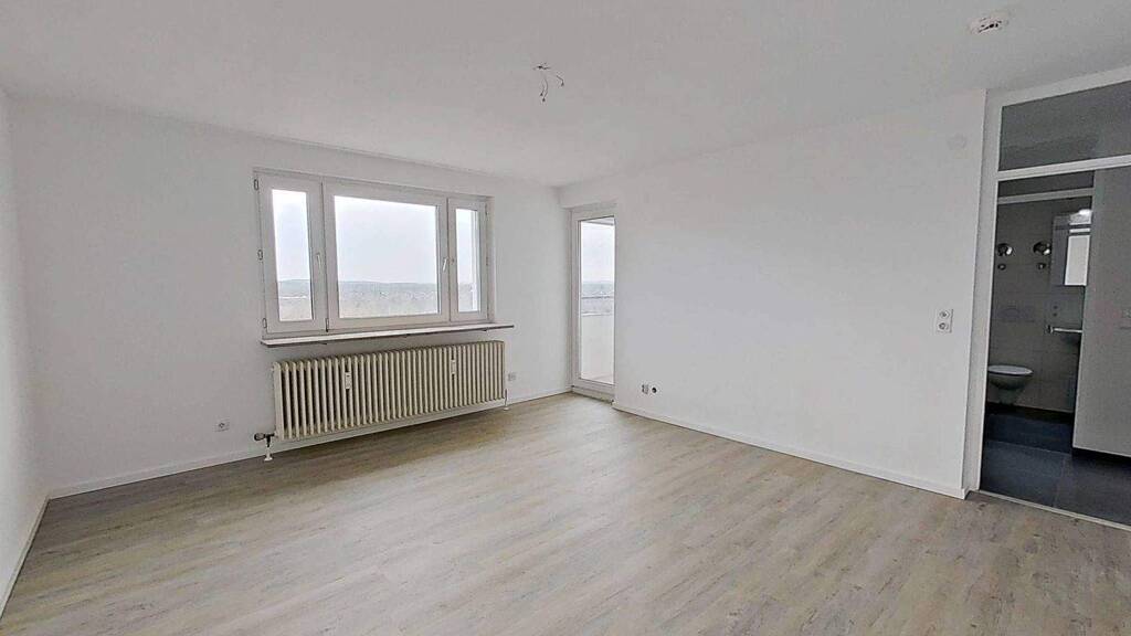 Der Mittelpunkt der Wohnung ist das offene Wohn- und Esszimmer, das durch seine Großzügigkeit besticht. Hier haben Sie ausreichend Platz, um einen gemütlichen Wohnbereich sowie einen Essplatz zu gestalten. Die angrenzende Loggia erweitert den Raum nach draußen und punktet mit einer wundervollen Aussicht auf die umliegende Nachbarschaft.
