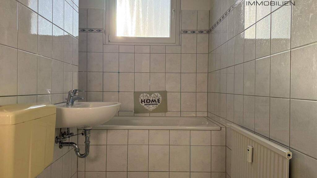 Am Ende der Wohnung liegt das Schlafzimmer, ruhig gelegen und ebenfalls mit weitem Ausblick. Über eine kleine Diele mit Einbauschrank gelangt man in das Wannenbad, hier steht eine Badewanne, Fenster sowie einen Waschmaschinenanschluss zur Verfügung