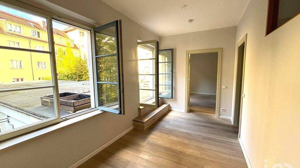 Der Gewerbeteil besteht aus drei hellen warmen Räumen mit Echtholzparkett, Teeküche und Duschbad. Er kann vermietet oder als Atelier genutzt werden. Antrag auf Wohnnutzung ist gestellt.