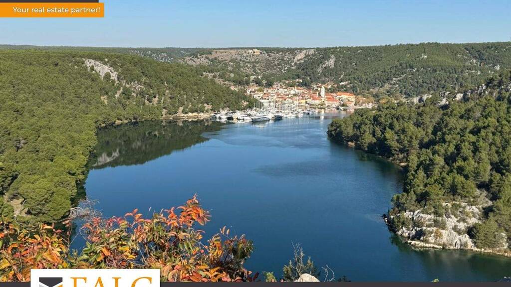 Die Grundstücke befinden sich in der Bucht von Vrulje / Bilice, nahe der historischen Küstenstadt Skradin, direkt am Zufluss des Krka-Flusses.
