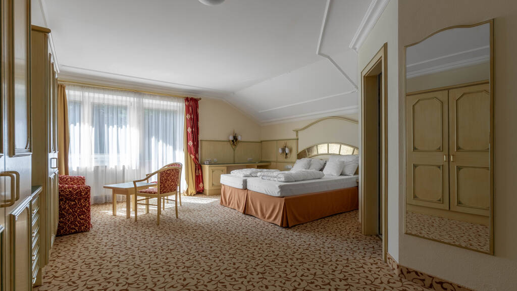 Die jeweiligen Geschosse erreichen Sie bequem mit dem Personenaufzug oder über eine Treppe. Im 1. OG befindet sich das großzügige Restaurant mit Barbereich und zwei Loungen. Eine Etage höher verfügt das Hotel über ein Spielzimmer, einen Ruheraum und ein Fitnessstudio. Weiters finden Sie hier die ersten Schlafräumlichkeiten vor.