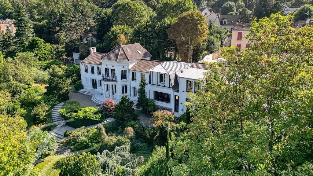 Perchée sur les hauteurs, à proximité immédiate des commerces et des transports, au sein d'un grand parc arboré de 8 220 m², propriété d'exception d'environ 500 m².