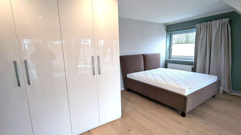 Über eine freistehende weiße Treppe die sich stilistisch in den Eingangsbereich integriert, gelangen Sie in das Obergeschoss, über den Flur erreichen sie ein großzügiges Studio mit großen Einbauschränken, die Ankleide mit dem anschließenden lichtdurchfluteten Schlafzimmer, ein Vollbad inklusive einer bodenbündigen Dusche und einer etwas tiefergelegten Badewanne. Ein Kinderzimmer vervollständigt die obere Ebene.