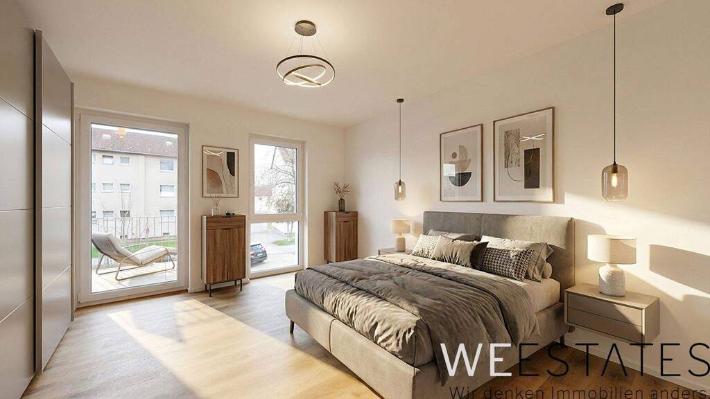 Diese moderne Neubauwohnung (Erstbezug) bietet mit zwei Zimmern und einem durchdachten Grundriss ein ideales Zuhause für Singles oder Paare. Bodentiefe Fenster sorgen für eine helle, freundliche Atmosphäre und eröffnen den Zugang zum Balkon - ein perfekter Ort für entspannte Stunden im Freien.