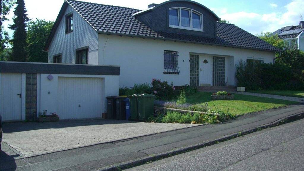Dieses gepflegte Einfamilienhaus in bester und begehrter Wohnlage des Ortes auf einer Anhöhe Richtung Wald zeichnet sich unter anderem durch einen großzügigen Garten mit altem Baumbestand aus.