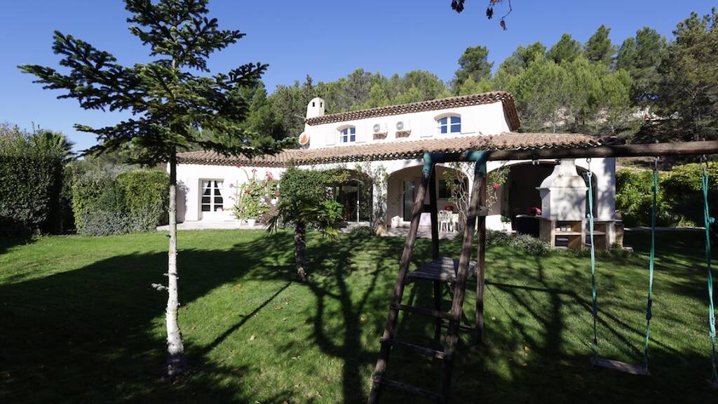 Just minutes from the refinement of Aix and the IBS international school, Le Montaiguet unfolds its wooded hills and Mediterranean scents. It is here, in this preserved haven, that an exceptional villa is hidden, surrounded by a one-hectare park where silence, serenity, and light reign.