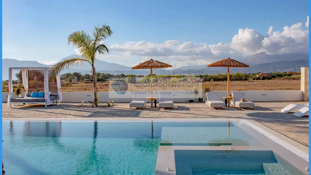 Diese exklusive Strandvilla nahe Kalamaki in Südkreta bietet luxuriöses Wohnen dort, wo die Wellen brechen - nur 100?Meter vom Meer entfernt.