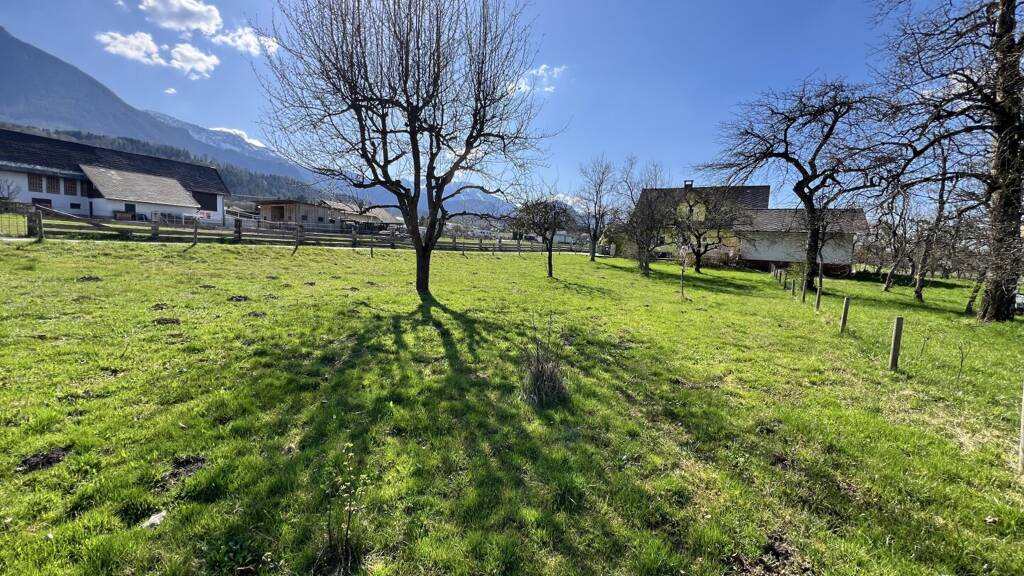 Einige Obstbäume befinden sich auf dem Grundstück, sodass bei einer entsprechenden Bebauung auch bereits für einen schönen Garten gesorgt ist. Sie können den Ausblick über grüne Wiesen bis in die Berge genießen.