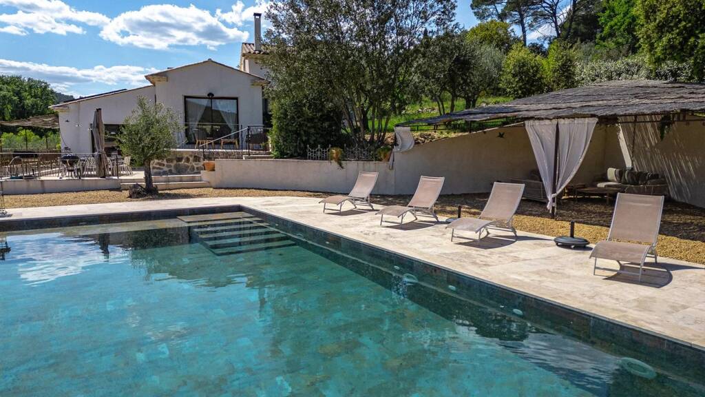 HOUSE - 10 MINUTES FROM COTIGNAC, in the heart of Green Provence, 1 hour from the seaside, the Gorges du Verdon and Aix en Provence, close to a lovely village of character and amenities, in a preserved and privileged countryside setting, superb Provencal house set on 3 000 sqm of land fenced, planted with Mediterranean trees. Infinity pool (12 x 5 m) with its large terraces.