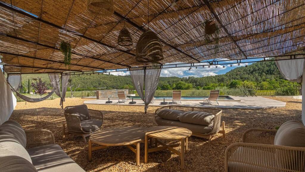 In a dominant position, it offers a unique and exceptional panoramic view on the surrounding countryside. Entrance, toilet, small lounge, living room with chimney, dining room, superb Provencal furnished kitchen. These different living rooms open onto terraces and a small patio with its fountain which will invite you to relax. Laundry room. 1 comfortable master bedroom with dressing room, private shower room, toilet and a pretty mezzanine. On another wing of the house, an independent part to receive your guests with 3 beautiful bedrooms each with private shower room, toilet and all opening onto terraces and the garden. Independent apartment (communicating with the house) : lounge space, furnished kitchen, 1 bedroom, shower room with toilet. Garage, storage room, wine cellar, floor heating, photovoltaic solar panels. . . Good exposition, the house is light and pleasant to live in. In perfect condition, low energy consumption, quality materials, generous dimensions and harmonious volumes. This quality house, tastefully decorated, full of charm offers many possibilities. It will be a peaceful place for holidays or in permanent residence. Excellent seasonal rental ratio possible. Information on the risks to which this property is exposed is available on the Géorisks website: georisks.gouv.fr