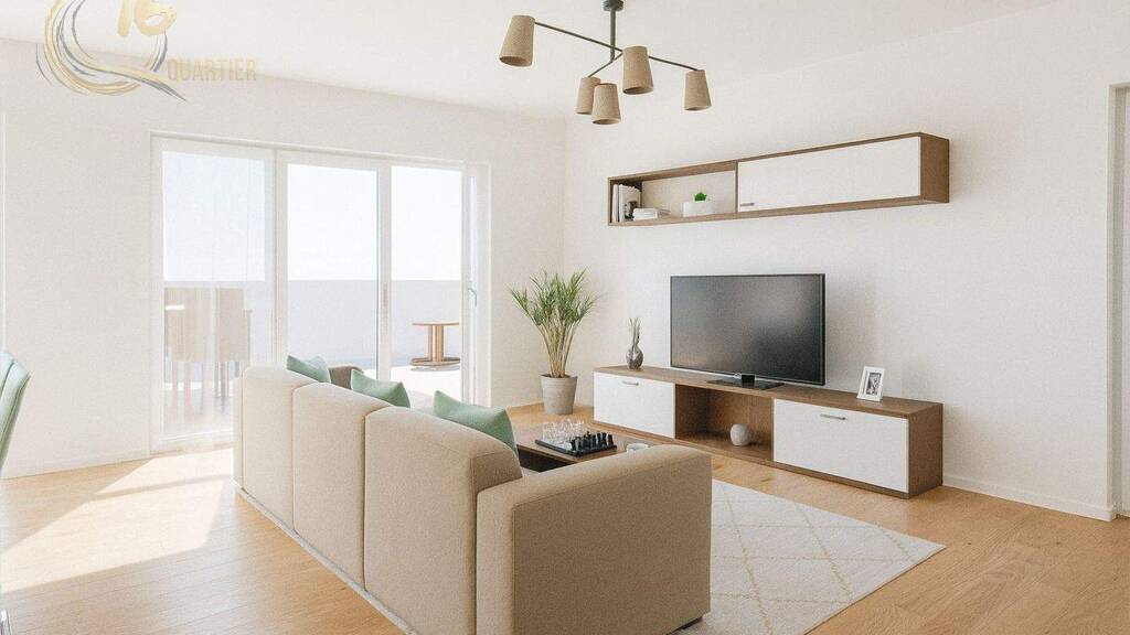 Der Grundriss ist familiengerecht und großzügig geplant: Ein offen gestalteter Wohn-/Essbereich mit Küche bildet den Mittelpunkt der Wohnung. Ergänzt wird das Raumangebot durch drei weitere Zimmer, die flexibel als Schlaf-, Kinder- oder Arbeitszimmer nutzbar sind. Ein Hauswirtschaftsraum sowie ein separates WC sind ebenfalls vorgesehen.