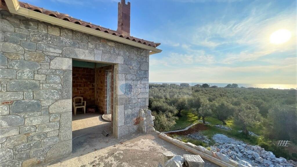 Es gibt auch einen großen Balkon, auf dem eine Pergola aufgestellt werden kann auf dem Sie den Meerblick genießen können. Das Anwesen befindet sich in unmittelbarer Nähe einer Siedlung, die das Nötigste sicherstellt. Es ist etwa 5 Minuten von Stoupa und den schönen Stränden von Messinian Mani entfernt.