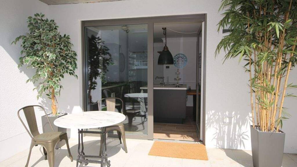 Die Wohnung verfügt über einen großzügigen Wohn-Essbereich mit moderner Küche mit Kochinsel, Büro mit Stuhl, ein großes Schlafzimmer mit Doppelbett und begehbare Ankleide, ein modernes Bad mit Dusche, Terrasse und ein Waschraum mit Waschmaschine und Trockner.